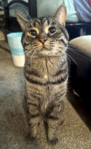 He’s a busy and inquisitive lad who loves snuggles and playtime, but just not other cats.