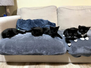Buttons is happy to curl up next to his brothers or the humans in the house for a cuddle.