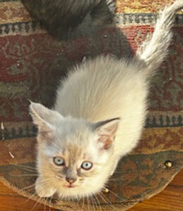 A note from Carina’s foster mom: “Carina is a lovely kitten who would do well in a home with one or more of her sisters, ideally Aurora and/or Stella.”