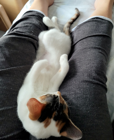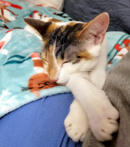 She was a little shy at first, but is learning how to become a snugglebug.