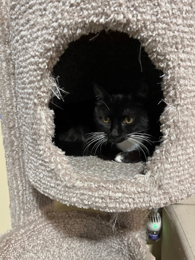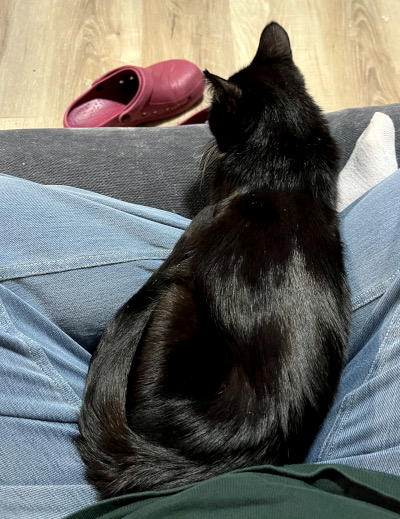 She also has started sitting on their laps and purring, and we think she will be an amazing lap kitty in the future.