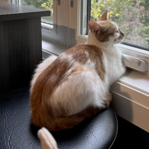 Flora prefers to be in a quiet environment, especially now as she has been living with rambunctious kittens for quite awhile!