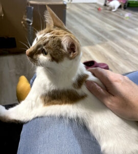 Now that her kittens are all adopted, she is starting to play more and chase things around the room.