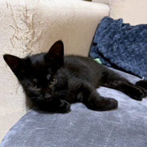 He loves running around and chasing his brothers or a toy, and then settles down on the couch next to a brother, his mother, or any human who is near.t