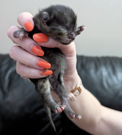 She was born from a stray momma cat, who was brought inside with just hours to spare before she gave birth.
