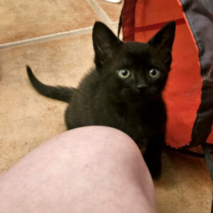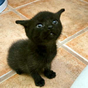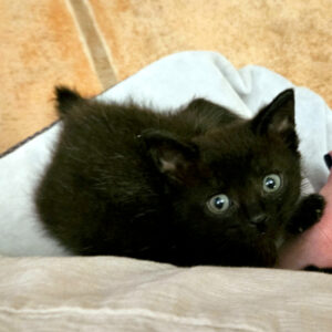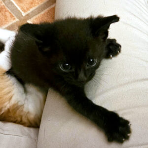The smallest of his siblings, this sweet black kitten makes up for it with the biggest heart.