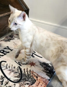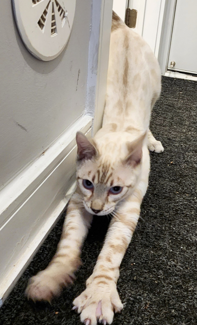 Nolan came from a home with multiple Bengal and other cats and was rescued by Abbey Cats, so he is familiar with living around other felines.