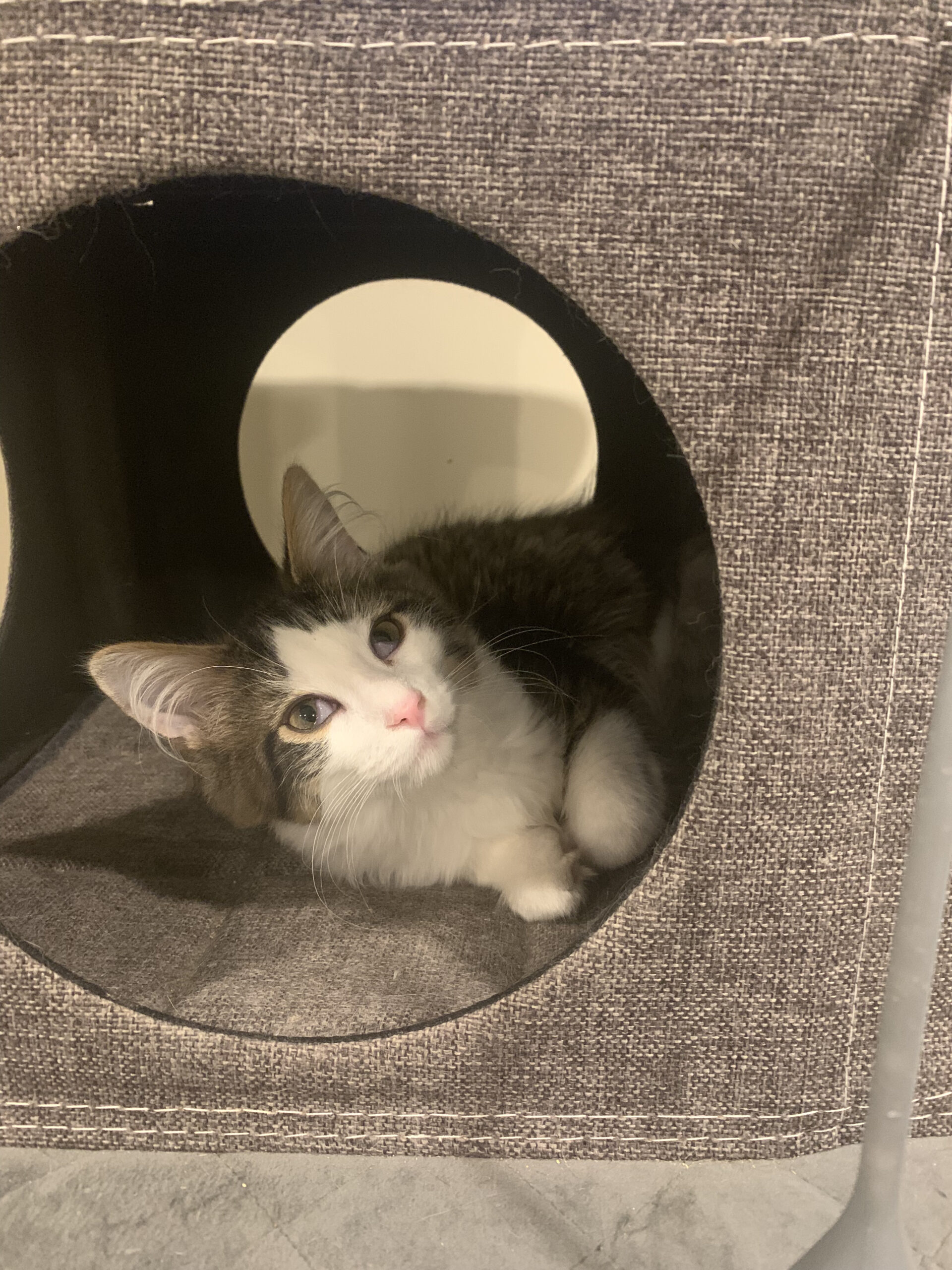 Rickey came to the rescue from a shelter up North. Rickey is cautious of new people and spaces but he is also very curious and will be the first to explore. He has beautiful fluffy fur and long wispy whiskers. He loves to cuddle up next to his foster mom every night at bedtime. He is currently in a foster home with 4 adults.