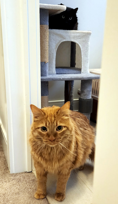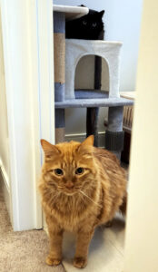 In their foster home, they’ve been around younger, high-energy cats and simply choose to do their own thing—calmly observing or ignoring the chaos.