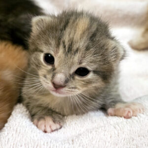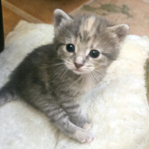 Tyra is a charming little kitten with a soft blend of grey calico fur that makes her as beautiful as she is unique.