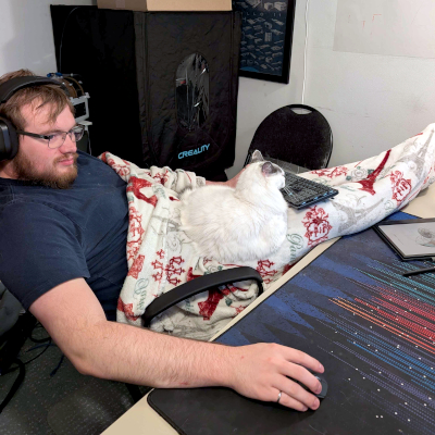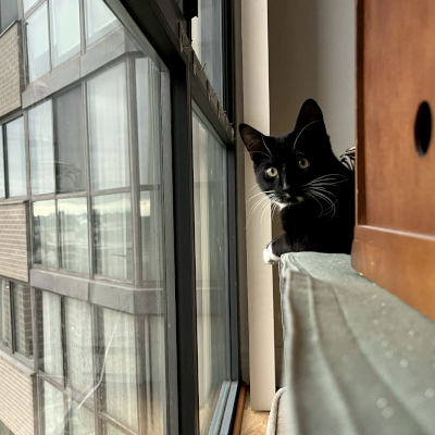 She spends her days “helping” us when we work from home and her nights curled up on our bed (sometimes right by our pillows!).