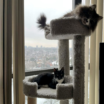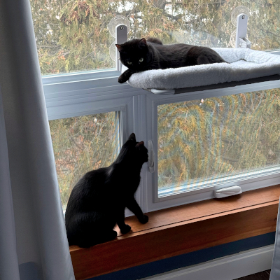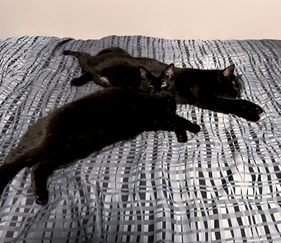 They also get along with my other cats – mostly Sebastian, where they constantly snuggle with him.