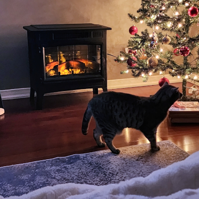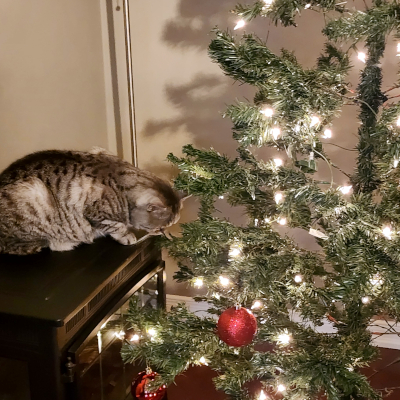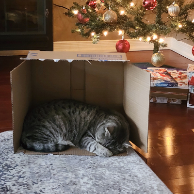 Liam, who is almost 18, tolerates the youngsters but he mostly sleeps in his bed in my office.