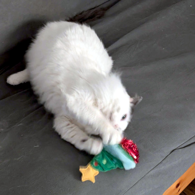 Right now – I wish you could see – Sebastian (who also came from a shelter, btw – as do all my cats) and the two little monsters are a rolling around the ground and playing. It just makes your heart swell!