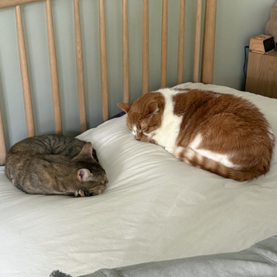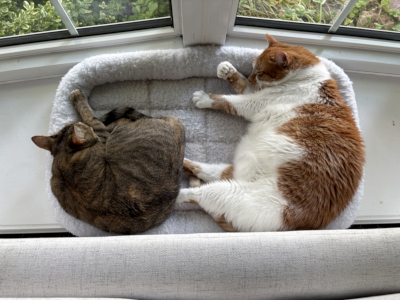 Our cats, Sammy and Miso seem smitten too and are eager to meet her.