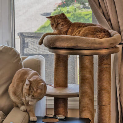 The cats are calm, super playful & affectionate both with us and with each other.